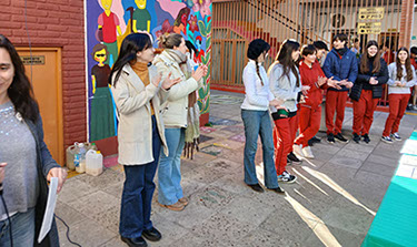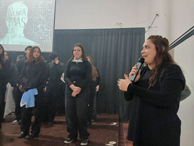 La profesora de Arte, Ludmila Baigorria en conjunto con el profesor de Historia trabajaron interdisciplinariamente el contenido “Dictadura” representándolo a través de una Performance llamada “Memoria Viva”.